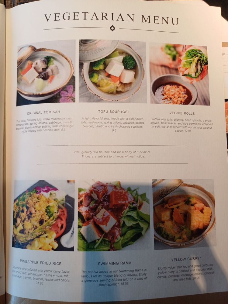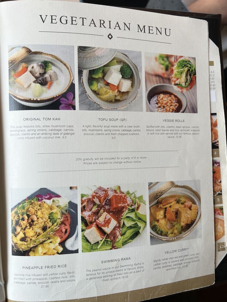 Vegetarian. the peanut sauce in our swimming rama is famous for its unique blend of flavors. enjoy a generous serving of fried tofu on a bed of spinach.